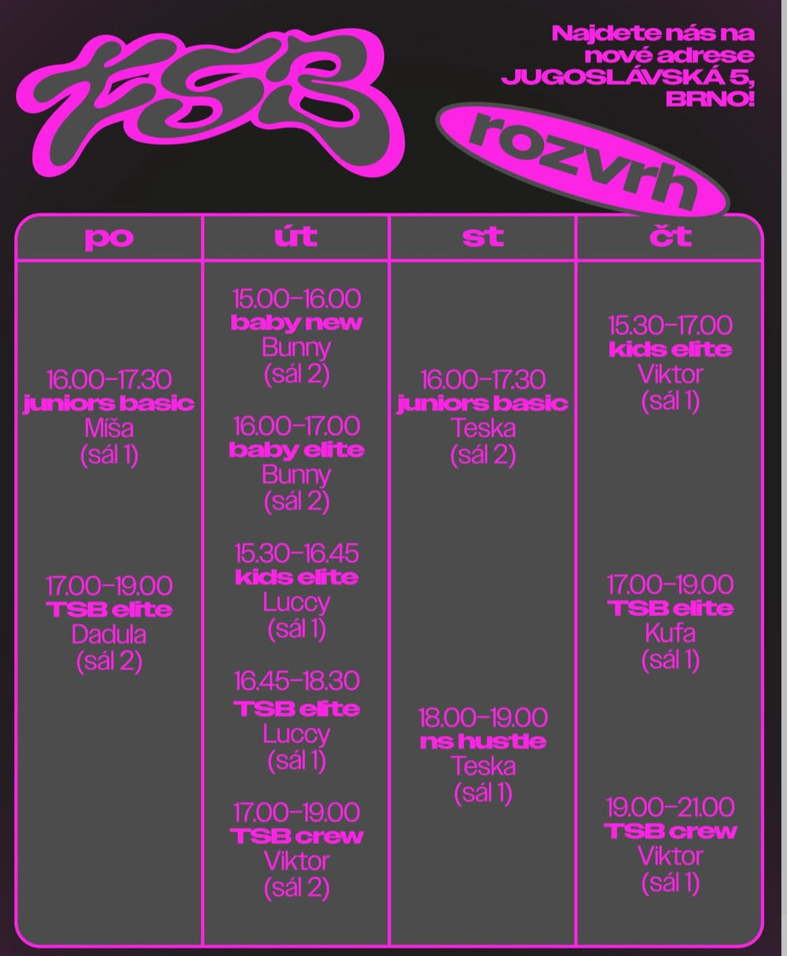 Lekce budou probíhat od dalšího měsíce od 10.12. do 25.3.2026 ve studiu na Jugoslávské 5.